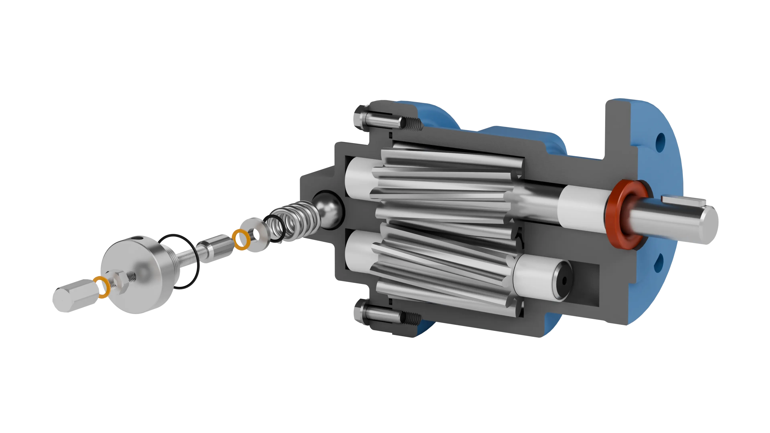 Die Zahnradpumpen der Baureihe F..U/DU sind mit integrierten Druckbegrenzungsventilen ausgestattet und schützen die Anlage zuverlässig vor unzulässigen Überdrücken.